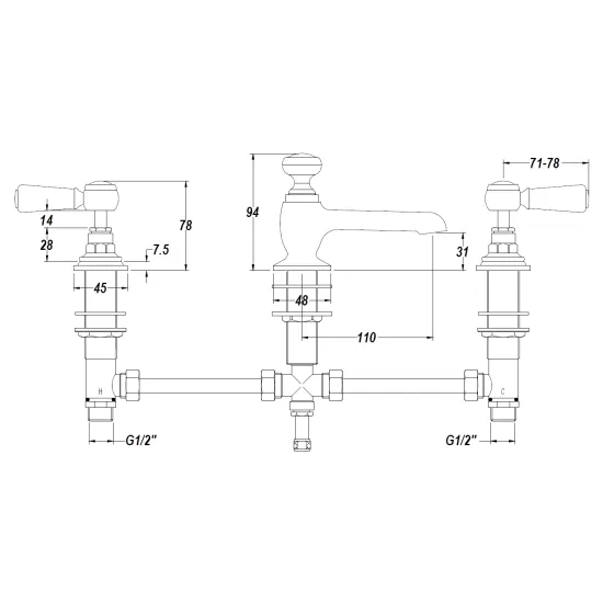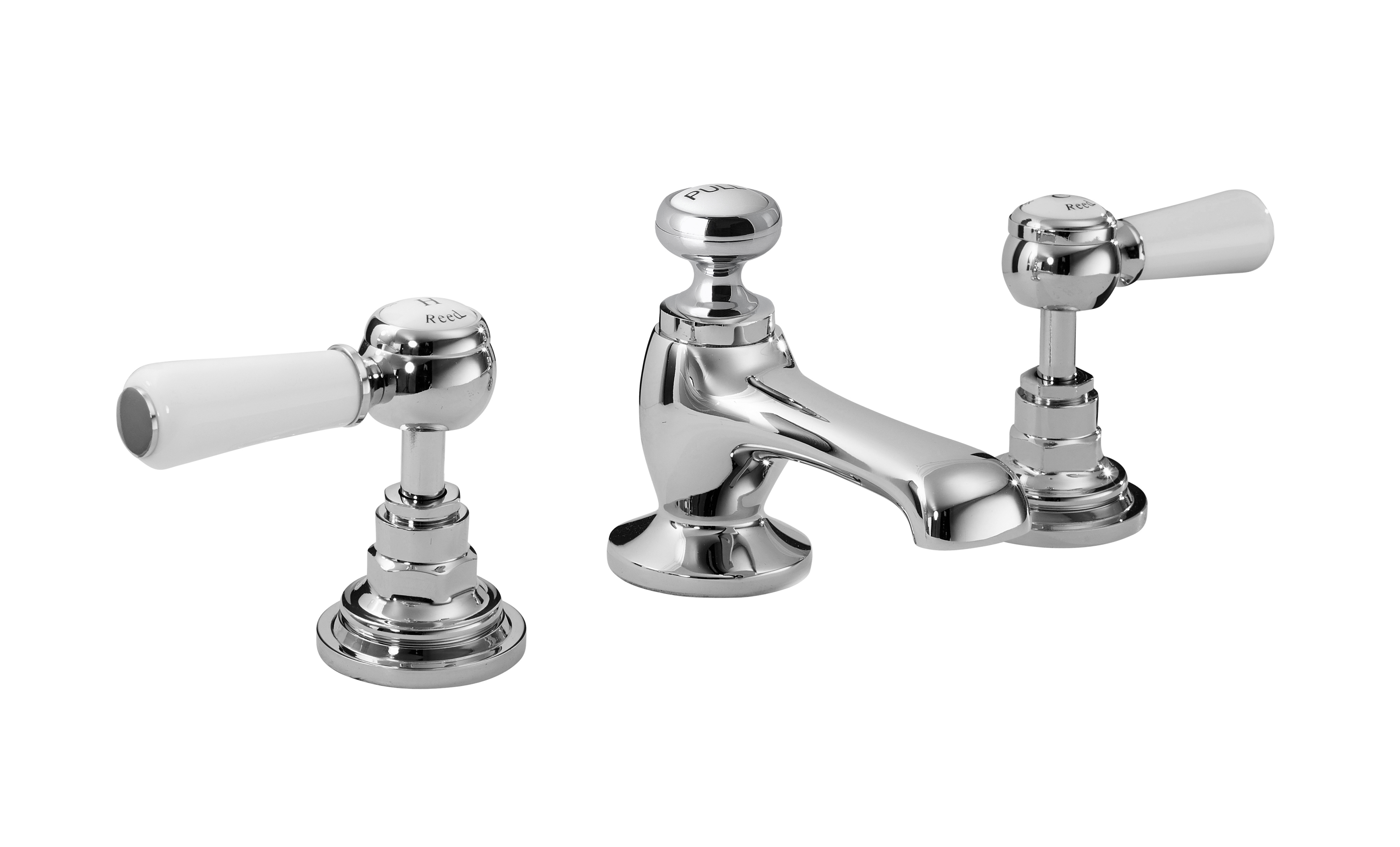 Old London White Topaz With Lever Handle 3 Tap Hole Basin Mixer - Chrome / White