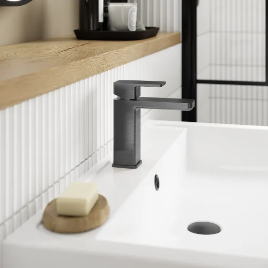 Stunning contemporary angular design with a striking brushed pewter finish. Ceramic disc technology provides smooth operation and long life. Excellent flow rates even at low pressure. Supplied with co-ordinating push button waste. WRAS approved (not including waste).