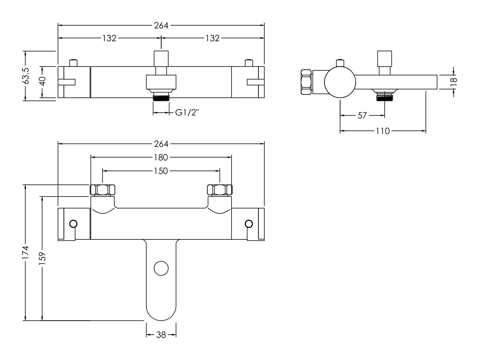 Binsey Wall Mounted Thermostatic Bath Shower Mixer