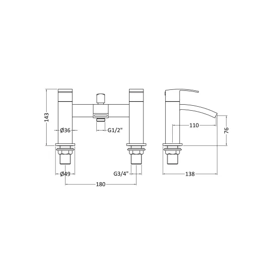 Binsey Deck Mounted Bath Shower Mixer With Kit
