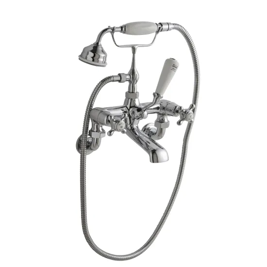 Old London White Topaz With Crosshead Handle Wall Mounted Bath Shower Mixer - Chrome / White