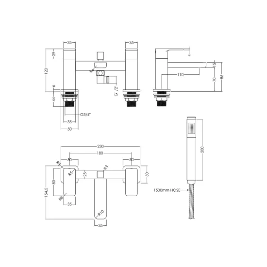 Stunning contemporary angular design with luxury chrome finish. Ceramic disc technology provides smooth operation and long life. Supplied whith shower kit. Co-ordinate your brassware with a matching basin tap and shower.
