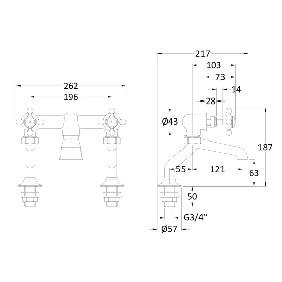 Black Topaz With Crosshead Handle Deck Mounted Bath Filler