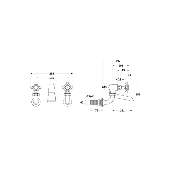 White Topaz With Crosshead Handle Wall Mounted Bath Filler