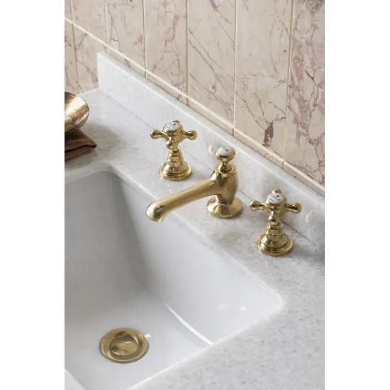 BC Designs Victrion Deck Mounted Crosshead 3 Tap Hole Basin Mixer Tap - Brushed Gold