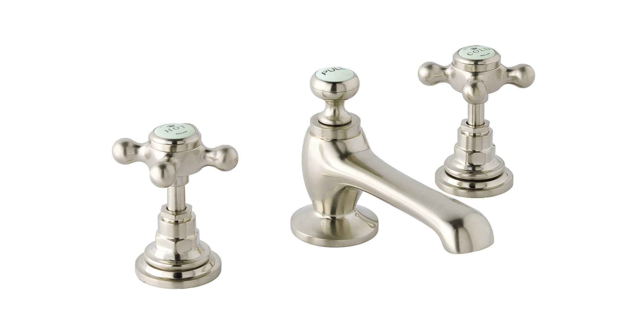 BC Designs Victrion Deck Mounted Crosshead 3 Tap Hole Basin Mixer Tap - Brushed Nickel
