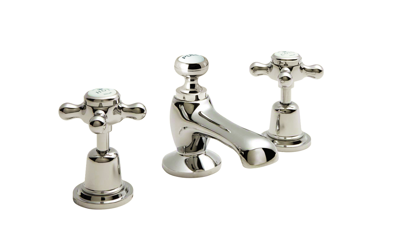 BC Designs Victrion Deck Mounted Crosshead 3 Tap Hole Basin Mixer Tap - Nickel