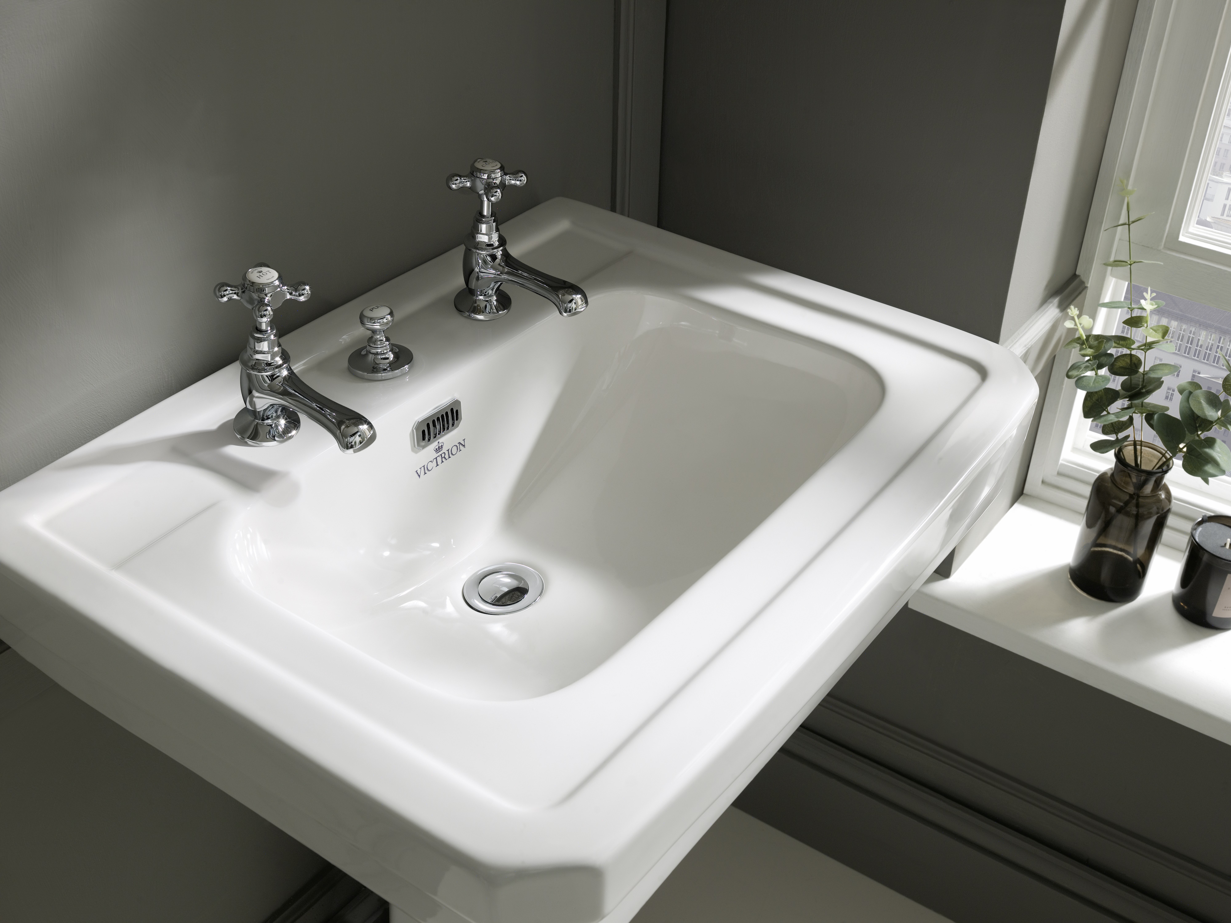 Victrion Deck Mounted Crosshead Basin Pillar Taps