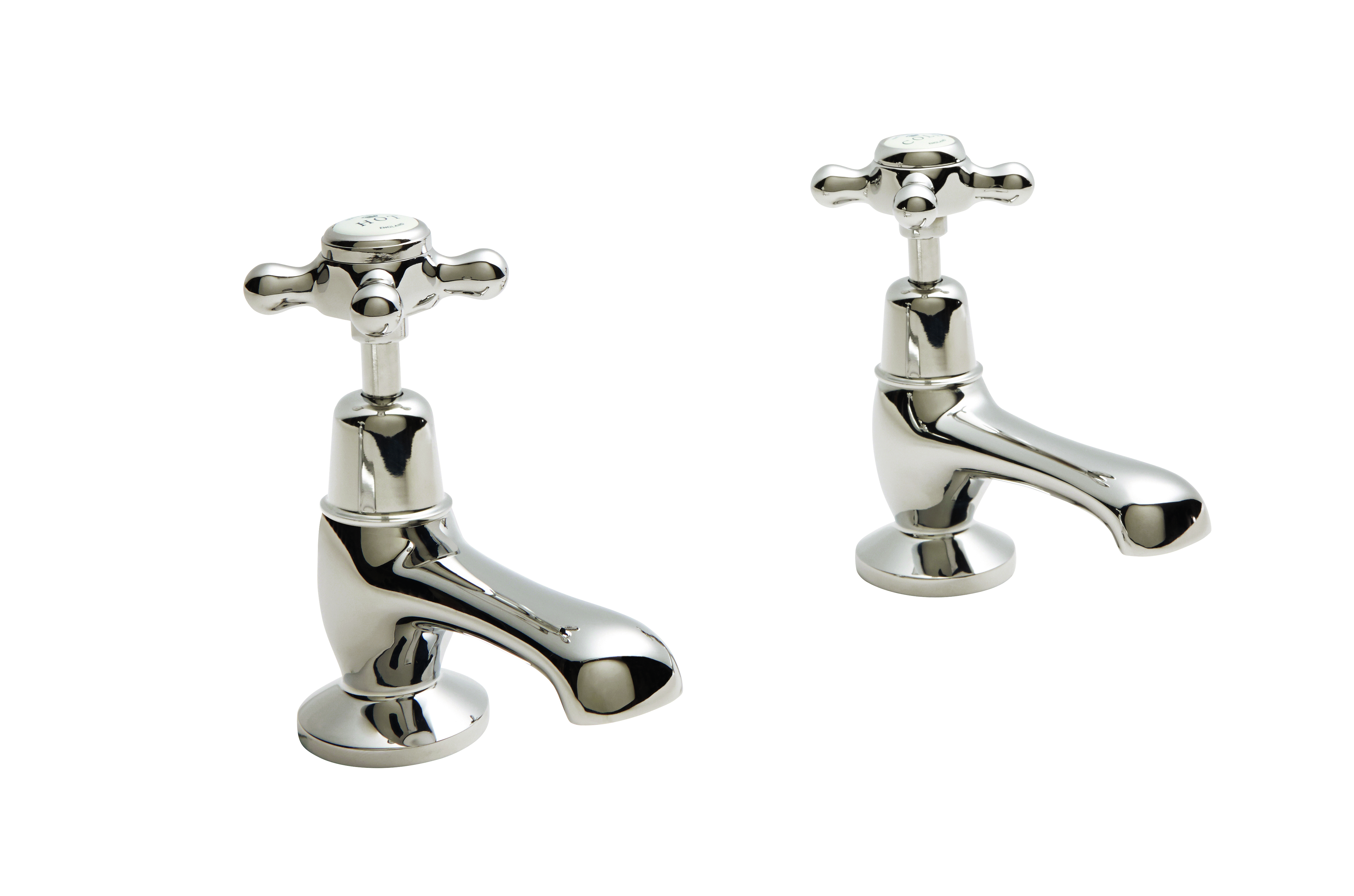 BC Designs Victrion Deck Mounted Crosshead Basin Pillar Taps - Nickel