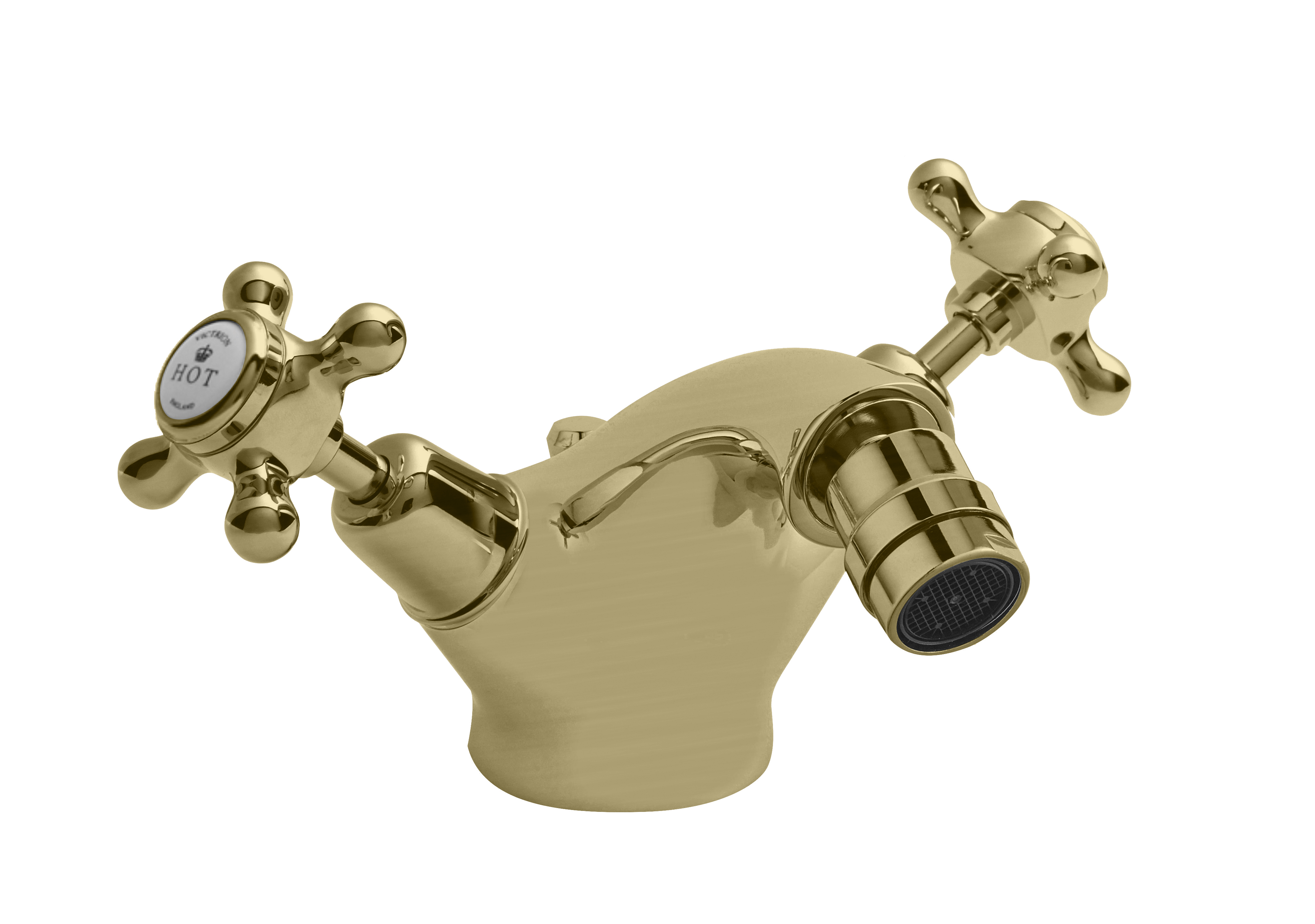 BC Designs Victrion Deck Mounted Crosshead Mono Bidet Mixer Tap - Brushed Gold