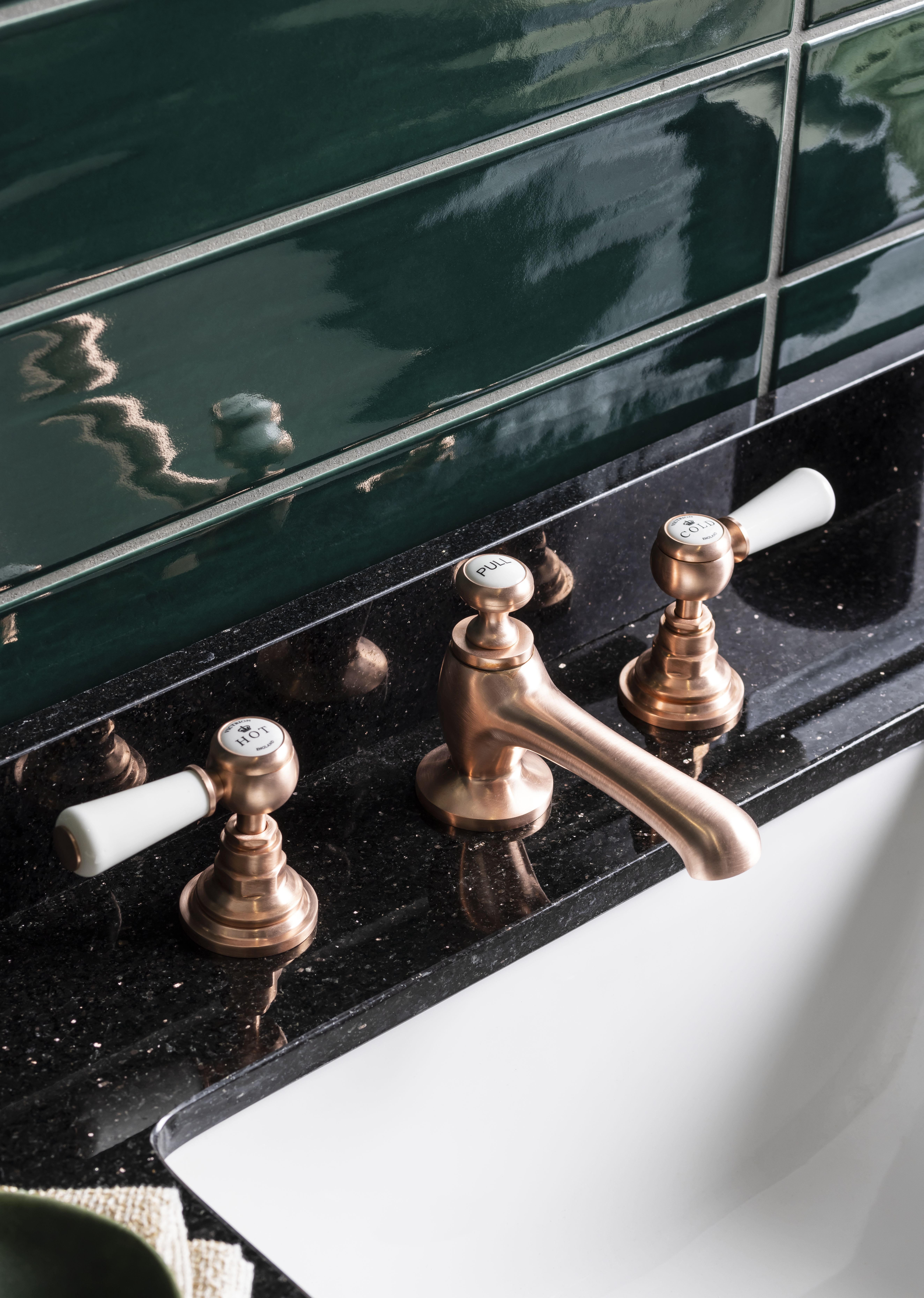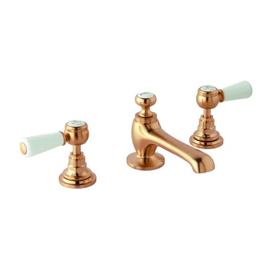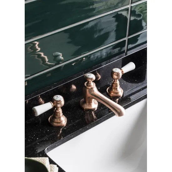 BC Designs Victrion Deck Mounted Lever 3 Tap Hole Basin Mixer Tap - Brushed Copper
