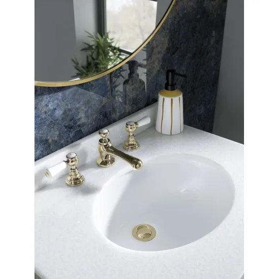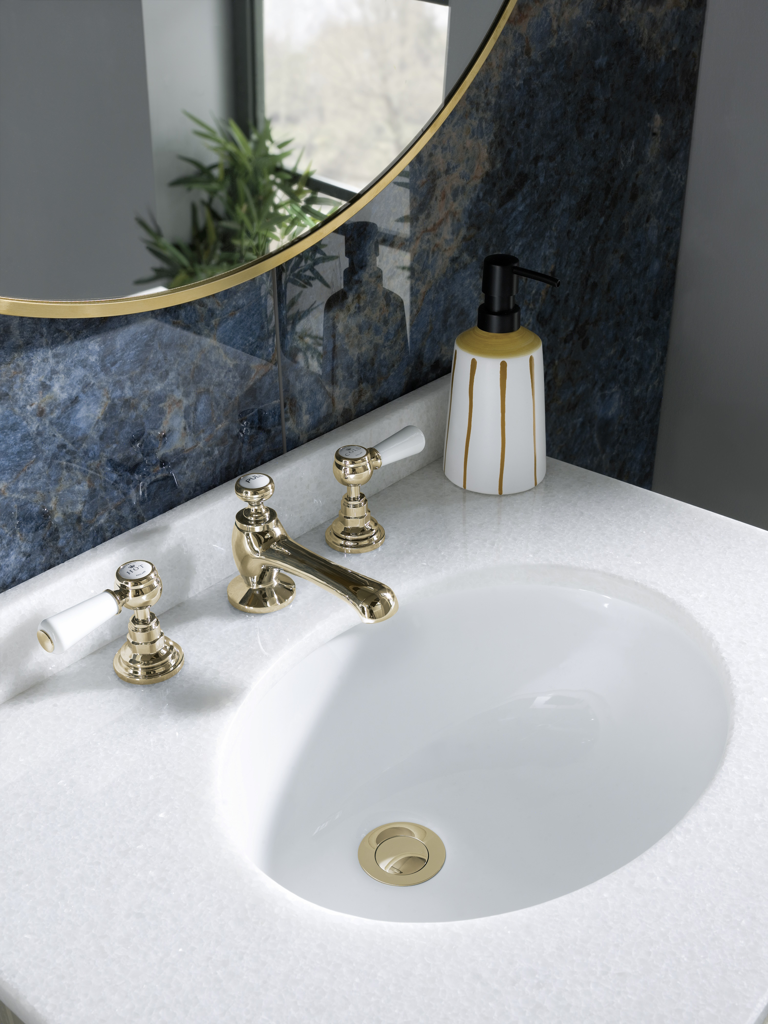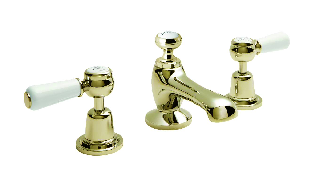 BC Designs Victrion Deck Mounted Lever 3 Tap Hole Basin Mixer Tap - Gold