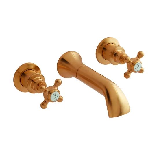 BC Designs Victrion Wall Mount Crosshead 3 Tap Hole Bath Filler Tap - Brushed Copper