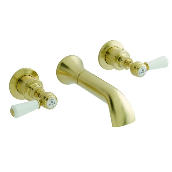 BC Designs Victrion Wall Mounted Lever 3 Tap Hole Bath Filler Tap - Gold