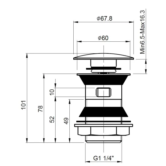 Push button waste. Made from stainless steel. Slotted to fit basins with overflow.